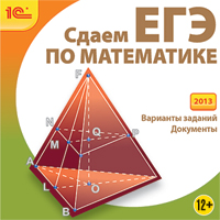 1. «Сдаем ЕГЭ по математике» – интерактивные версии вариантов контрольных измерительных материалов (КИМ) ЕГЭ 2002–2013 гг. по математике, реализованные в оболочке «1С:Репетитор». В совокупности представленные варианты содержат 614 заданий. Важной особенностью продукта является то, что он включает варианты КИМ, разработанные специально для этого издания по спецификации 2013 г. Таким образом, вошедшие в его состав варианты структурно и методологически максимально близки реальным вариантам предстоящего экзамена – ЕГЭ-2013.
